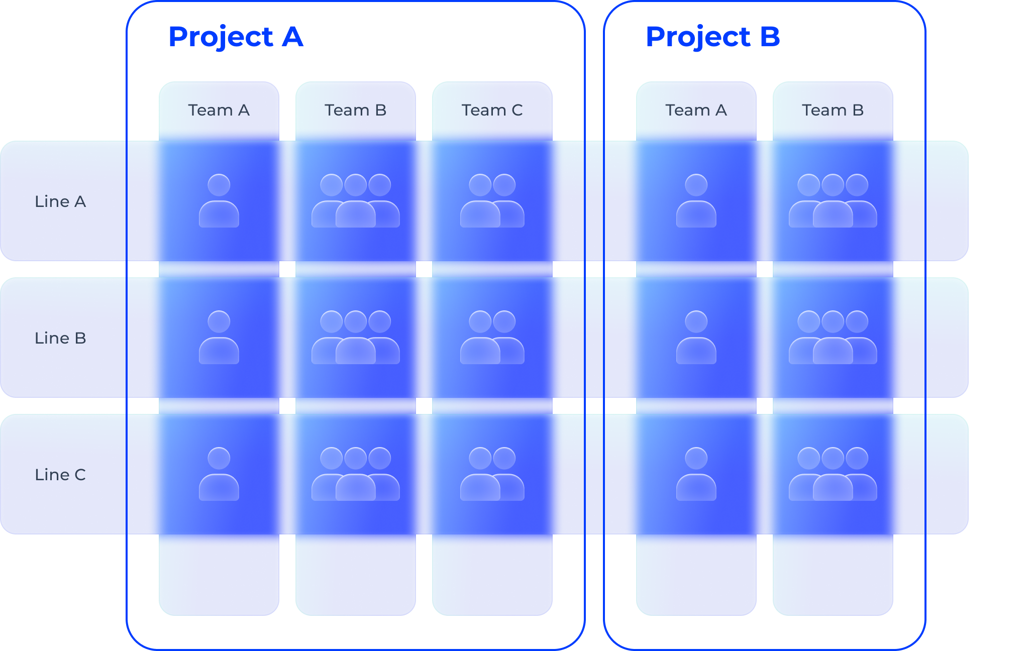 We adapt to the needs of projects. Sometimes a team can cover a project by itself, and sometimes 4-5 teams work together in scaled agility.