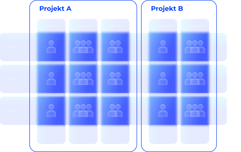 A csapataink közötti erős partnerség és támogatás alapja a mátrix-szerűen felépülő szervezetünk.